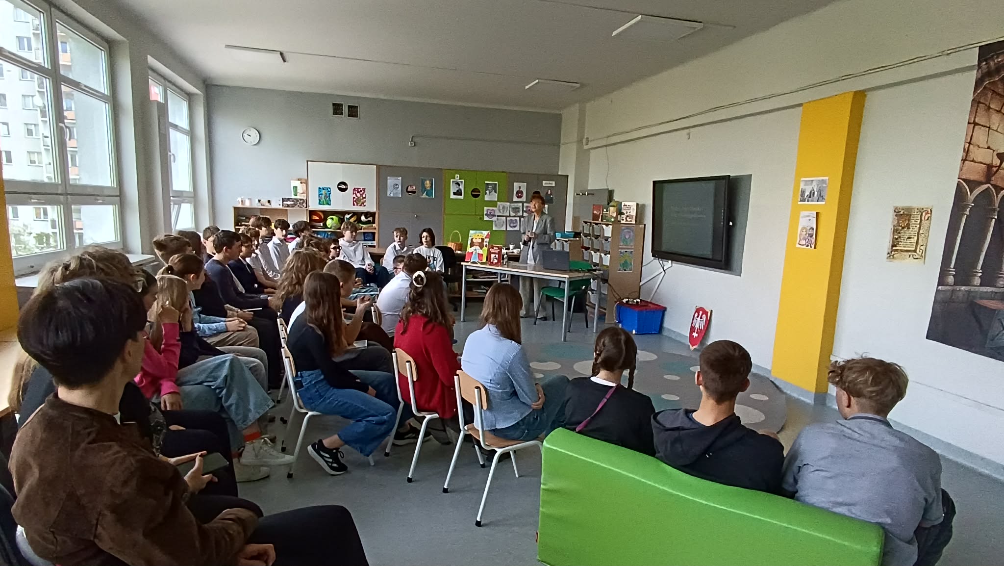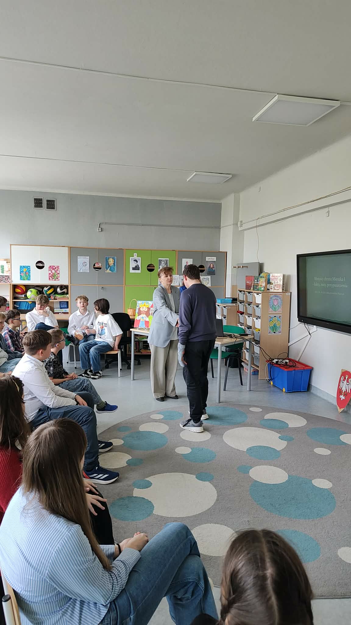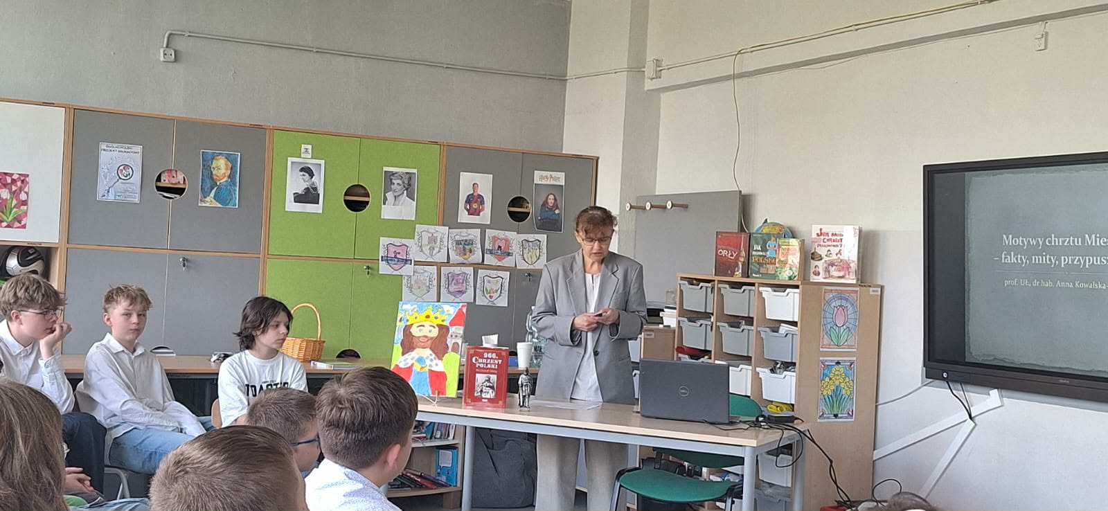 24 kwietnia w naszej szkole gościliśmy kolejny raz panią prof. Annę Kowalską-Pietrzak, mediewistkę, dyrektora Instytut Historii Uniwersytetu Łódzkiego i absolwentkę "Dziewiętnastki". Pani Profesor przybliżyła naszym uczniom fakty i mity związane z okolicznościami przyjęcia chrztu przez Mieszka I. Młodzież dowiedziała się, że ustalenie daty dziennej i rocznej tego ważnego w dziejach naszej ojczyzny wydarzenia nie jest łatwą sprawą, a 14 kwietnia 966 r. jest jego symbolicznym upamiętnieniem. Korzystając z wizyty naszego Gościa laureaci szkolnego konkursu na prezentację z okazji 1060. rocznicy chrztu Polski otrzymali nagrody i pamiątkowe dyplomy. Dziękujemy p.prof. Annie Kowalskiej-Pietrzak za poświęcony czas i zapraszamy na kolejne spotkania poświęcone niezwykłe interesującej historii Polski.