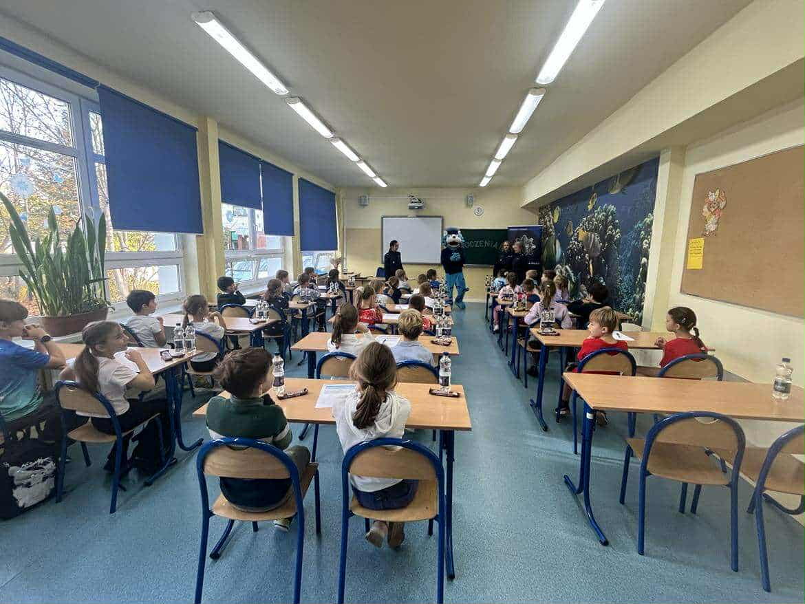 24 października 2025 r. w naszej szkole odbył się wyjątkowy etap turnieju Policyjnej Akademii Bezpieczeństwa, organizowanego przez Komendę Wojewódzką Policji w Łodzi. Wydarzenie zgromadziło uczniów klas drugich, którzy w dwuosobowych zespołach – dziewczynka i chłopiec – rywalizowali w konkurencjach sprawnościowych oraz testach wiedzy o bezpieczeństwie. Podczas emocjonujących zmagań dzieci wykazały się nie tylko doskonałą kondycją fizyczną, ale również dużą znajomością zasad bezpiecznego zachowania w różnych sytuacjach życiowych. Tor przeszkód, inspirowany policyjnym torem sprawnościowym, dostarczył uczestnikom mnóstwo sportowych emocji i radości. Cała rywalizacja przebiegała w duchu fair play i wzajemnego szacunku. Uczniowie wspierali się nawzajem, a publiczność gorąco kibicowała każdej drużynie. Wszyscy uczestnicy otrzymali pamiątkowe dyplomy i upominki, a zwycięska para będzie reprezentować naszą szkołę na etapie wojewódzkim w Łodzi.